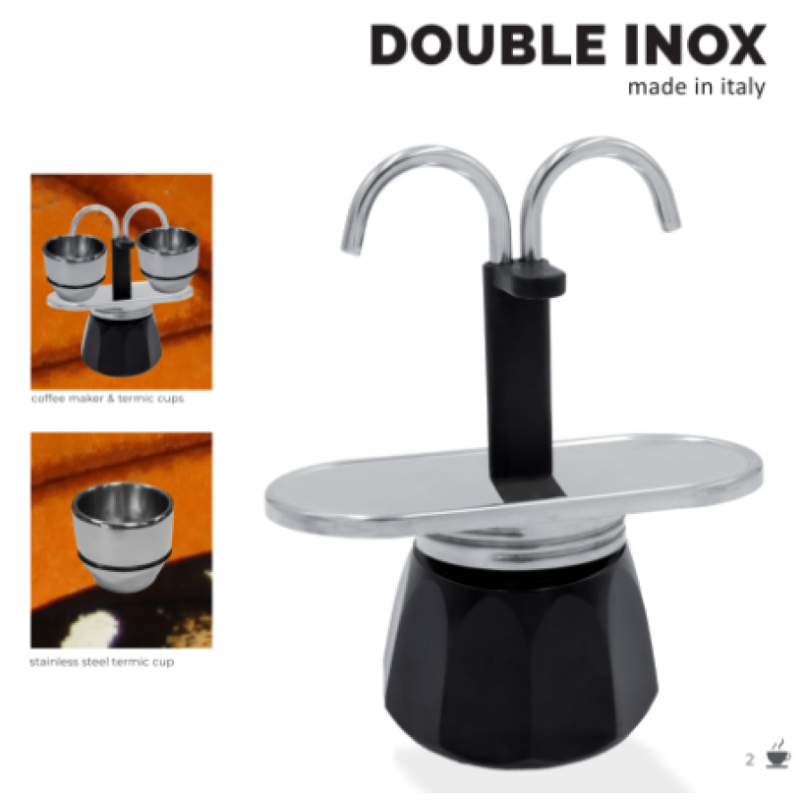 Η Moka Double 2 ΚούπεςInox-Μαύρο προσφέρει έναν ιδανικό συνδυασμό παραδοσιακής παρασκευής και μοντέρνου σχεδιασμού.