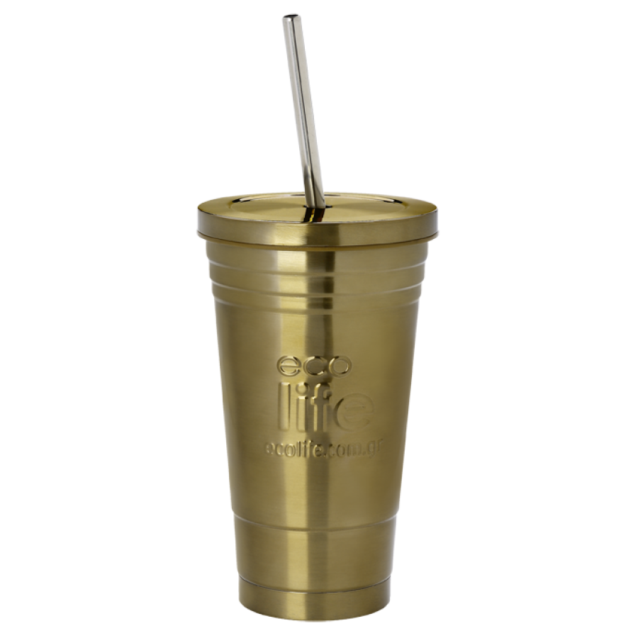 Θερμός Με Καλαμάκι 480Ml Μπρονζέ Χρώμα